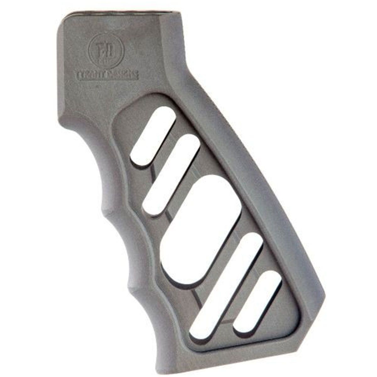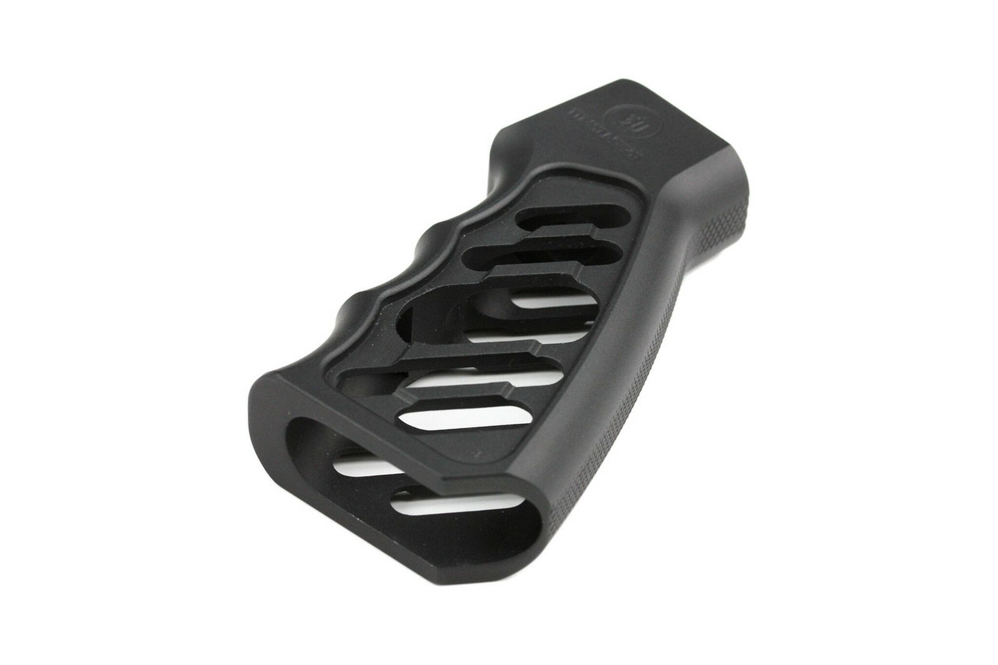 The Tyrant Designs® AR-15 LWP Grip is an easy-to-install, nearly indestructible, and skeletonized pistol grip, designed to deliver superior comfort and control, as well as reduced weight. Constructed of CNC-machined 7075 aluminum with polymer backstraps and a type III hard-coat anodized finish, this drop-in grip offers superior durability for long-lasting performance. Chamfered edges work in tandem with the polymer backstraps to deliver improved ergonomics for added comfort and control. Plus, this skeletonized pistol grip offers quick and easy installation for field-ready performance in a matter of minutes!