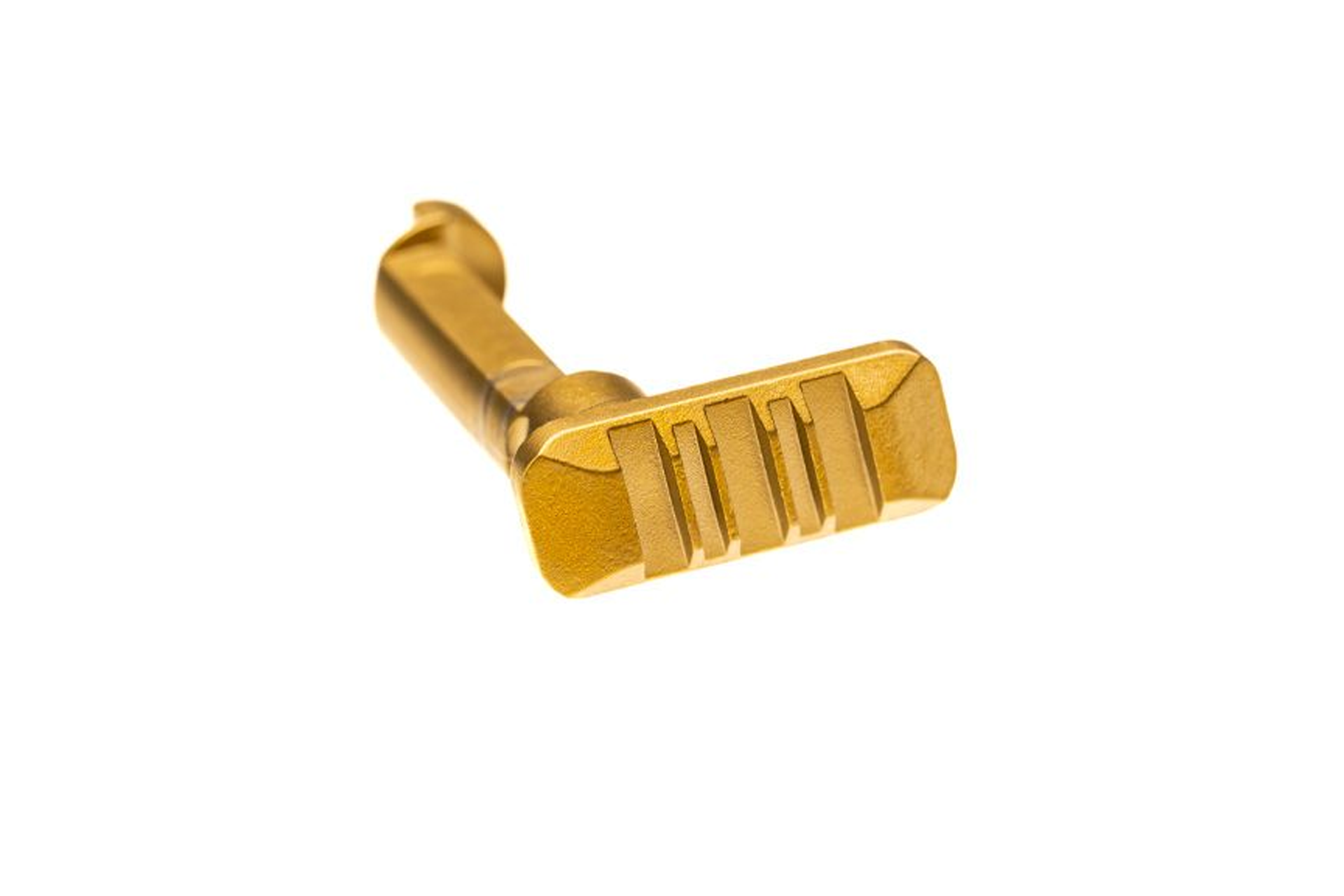 At Tyrant CNC, we understand the importance of durability and performance. That’s why this takedown lever is molded from 17-4 stainless steel, known for its strength and corrosion resistance. Once formed, each piece undergoes a bead-blasting process, giving it a uniform and aesthetically pleasing matte finish. But we didn’t stop there. The lever then receives a PVD (Physical Vapor Deposition) finish, further enhancing its durability and resistance to wear, corrosion, and oxidation. The result? A takedown lever that’s not just tough but is built to last a lifetime.