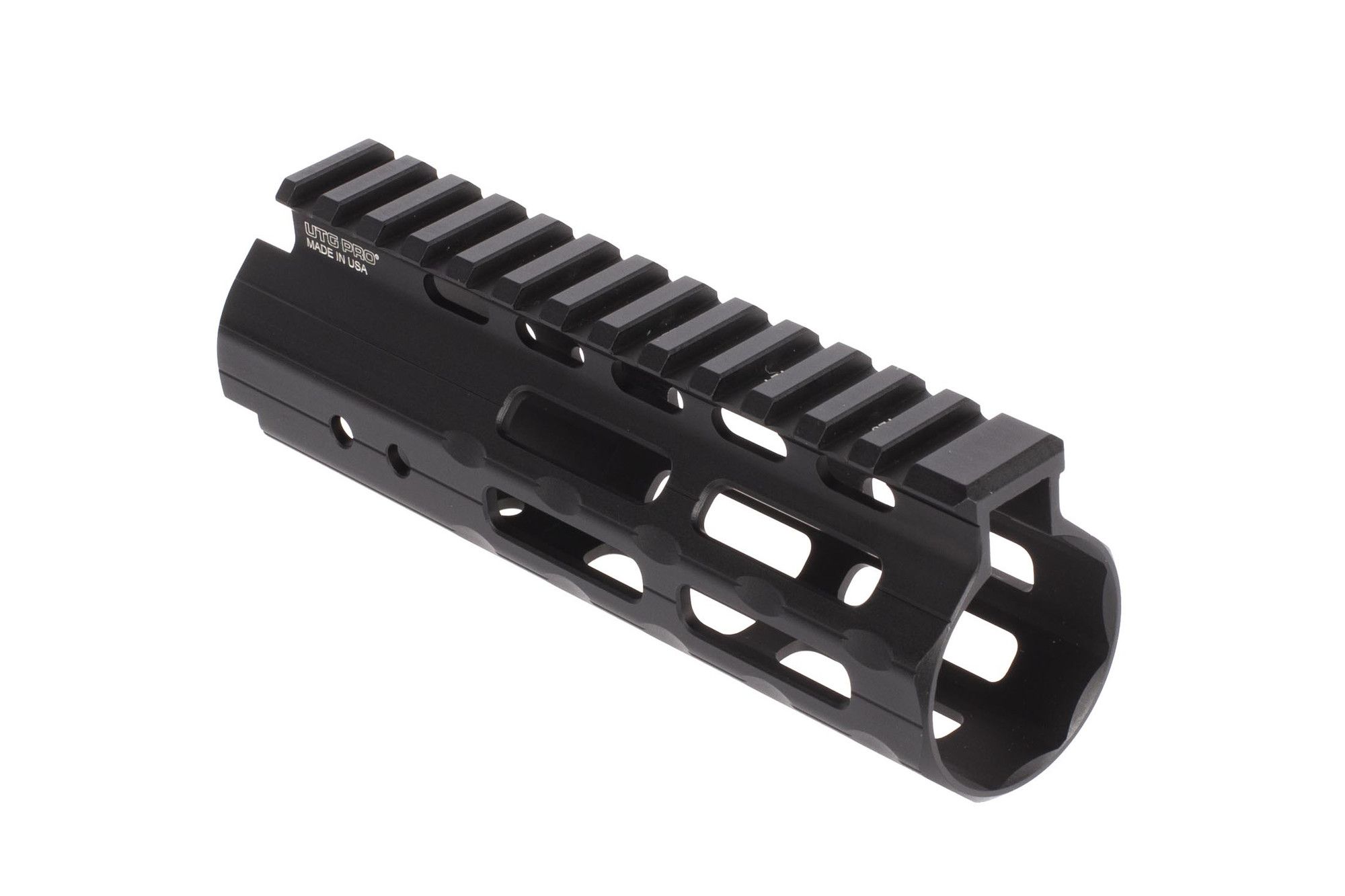 The UTG PRO Super Slim handguard features the popular M-LOK weapon attachment system so you can quickly attach lights, lasers, grips, and various other accessories to your rifle at any of the 14 slots along the handguard. It also has a full length 13 slot picatinny top rail that sits flush with your flat top upper receiver for a continuous rail for optics or red dot sights. This rail includes integral anti-rotational tabs and a steel barrel nut for a secure fit and easy installation with your upper receiver.