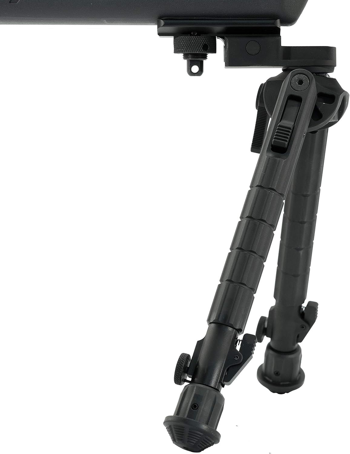 Is this bipod compatible with all Picatinny rail systems? Yes, the low-profile offset mount with reinforced steel cross bolt ensures secure fit on standard Picatinny rails, and it includes a swivel stud adaptor for broader compatibility.
