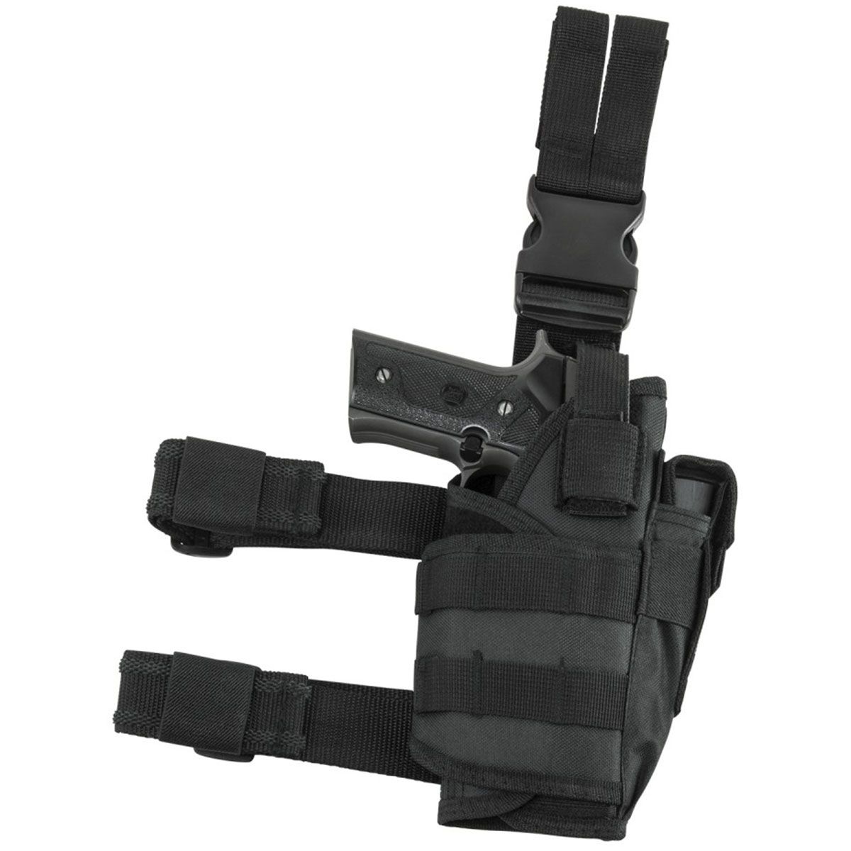 - Adjustable Wrap Around Universal Drop Leg (Right Handed) Holster fits most Full Size and Compact Semi-Auto Pistols.