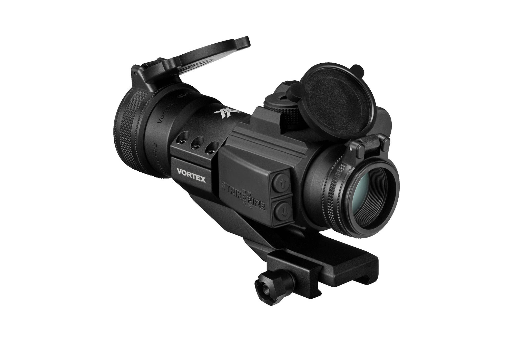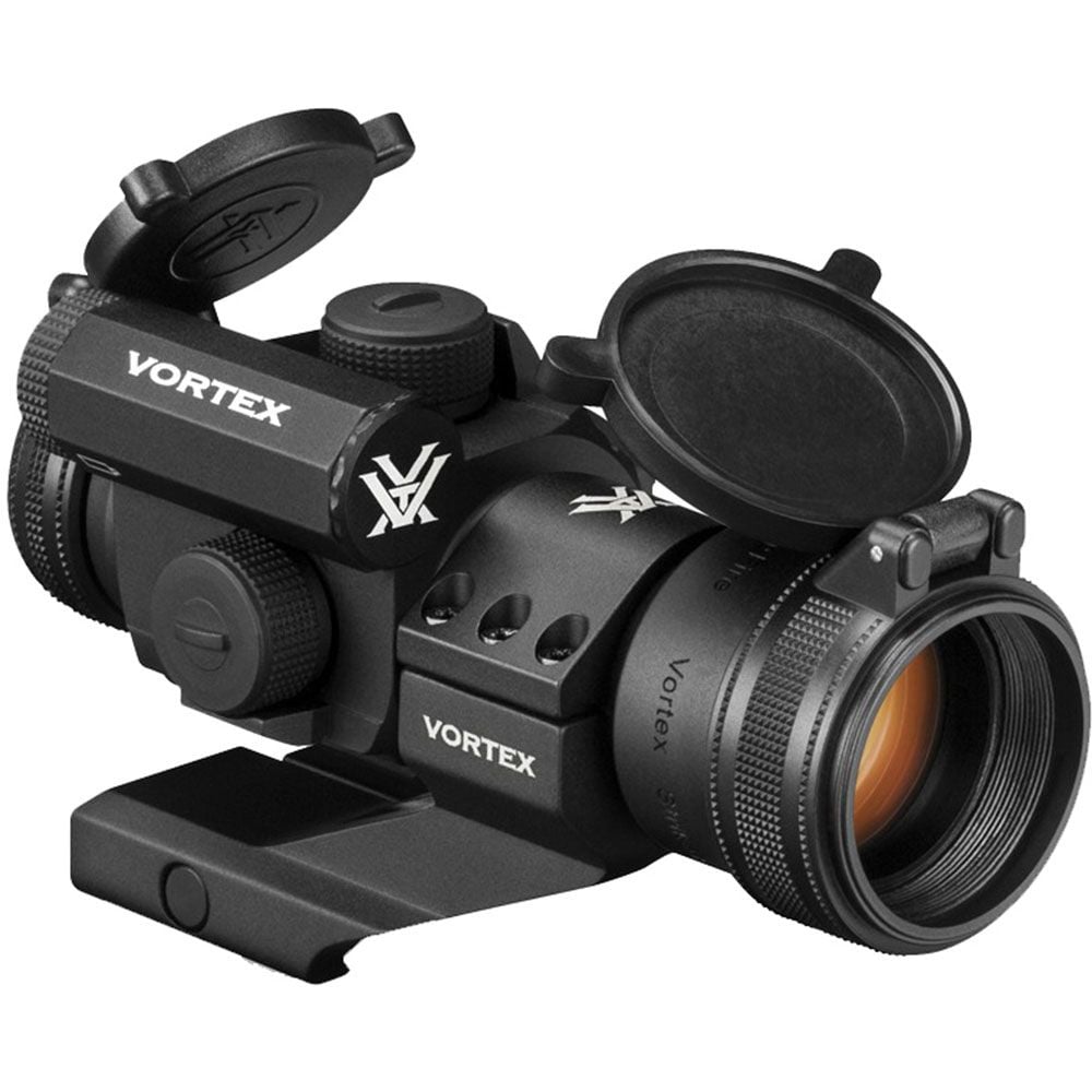The Vortex StrikeFire II 1x scope is made from durable 6061-T6 aluminum to withstand heavy recoil and impacts and has the added benefits of O-ring seals to prevent water and debris from entering the glass, which is fully multi-coated to prevent glare and reduce the chance of scratches. The inside of the scope has been nitrogen purged and sealed to prevent the glass from fogging which would happen if oxygen were introduced to the system. This awesome deal also comes with flip up scope covers to protect the glass when in storage or not in use. Just remember, keep both eyes open and the Vortex red dot sight will do the rest.