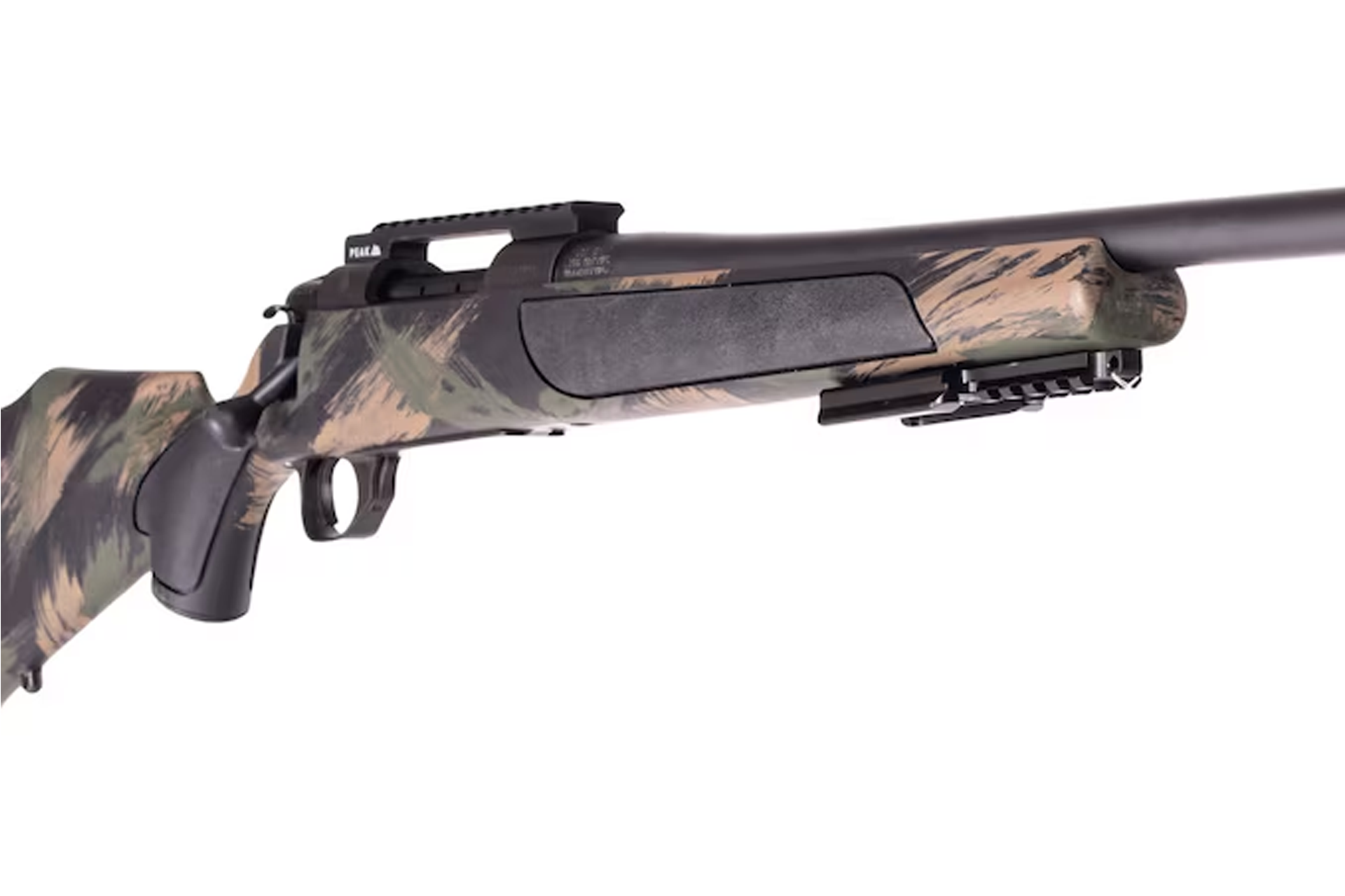 Inspired by the rugged beauty of the Black Hills, this Vanguard is built to thrive in any environment. Designed for accuracy and control, its ergonomic stock offers a comfortable, natural feel and a stable platform for consistent precision. The weather-resistant construction ensures reliability, even in the harshest conditions. The Black Hills edition comes equipped with premium accessories from Peak 44, including an optics-ready Pic Rail and an Arca/Pic Adapter on the foreend, giving you versatile mounting options for added accessories. Whether you’re trekking through challenging terrain or facing unpredictable weather, the Black Hills Vanguard is ready for the hunt.