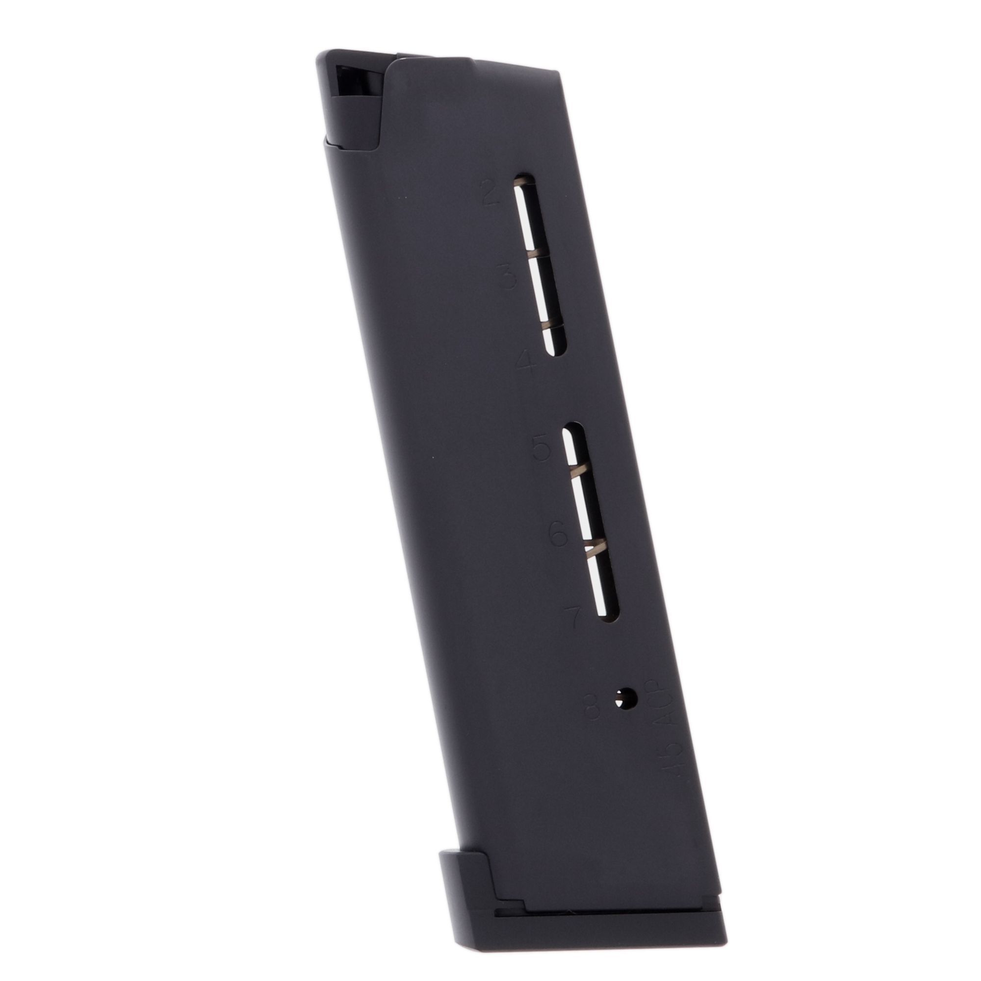 Specifically engineered for reliable duty and competition performance, the Wilson Combat® 1911 Elite Tactical HD / +P .45 ACP 8-Round Magazine with Aluminum Base Pad boasts a precision-machined stainless steel body with 0.25”-thick walls for superior strength, while a high-tensile stainless steel spring and self-lubricating, extended-skirt polymer follower ensure smooth, reliable feeding performance. The proprietary multi-step tumbling and finishing process delivers exceptionally smooth feeding and lightning-fast insertion into the weapon for enhanced reliability, and factory-numbered witness cuts deliver quick, visual round counts at a glance. Plus, the factory-installed aluminum base pad offers enhanced shock and corrosion resistance. What are you waiting for? Shop our full collection of Wilson Combat 1911 magazines today!