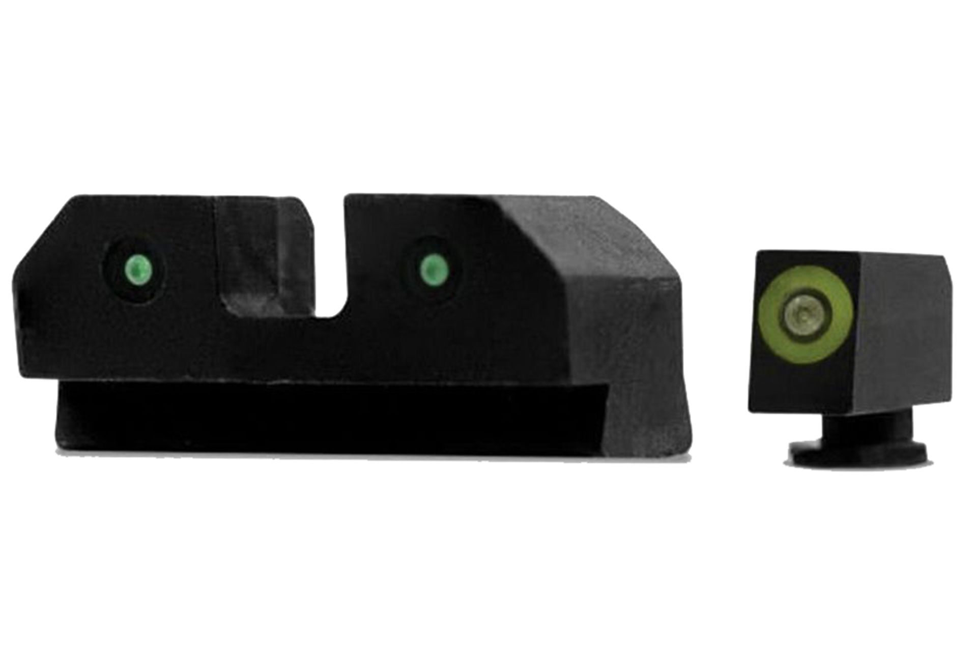 XS RAM (Radioactive Material) tritium night sights feature a traditional 3 dot tritium, notch and post sight picture. The rear is blacked out to increase contrast against the front sight. The front sight is available in orange or green and is equipped with our Ember Glow Dot Technology. Ember absorbs ambient light and glows in low light. The front tritium lamp charges the Ember dot making the front sight glow brighter than the rear, keeping focus down range. RAM sights are the brightest options for fast and accurate shooting in bright and low light.