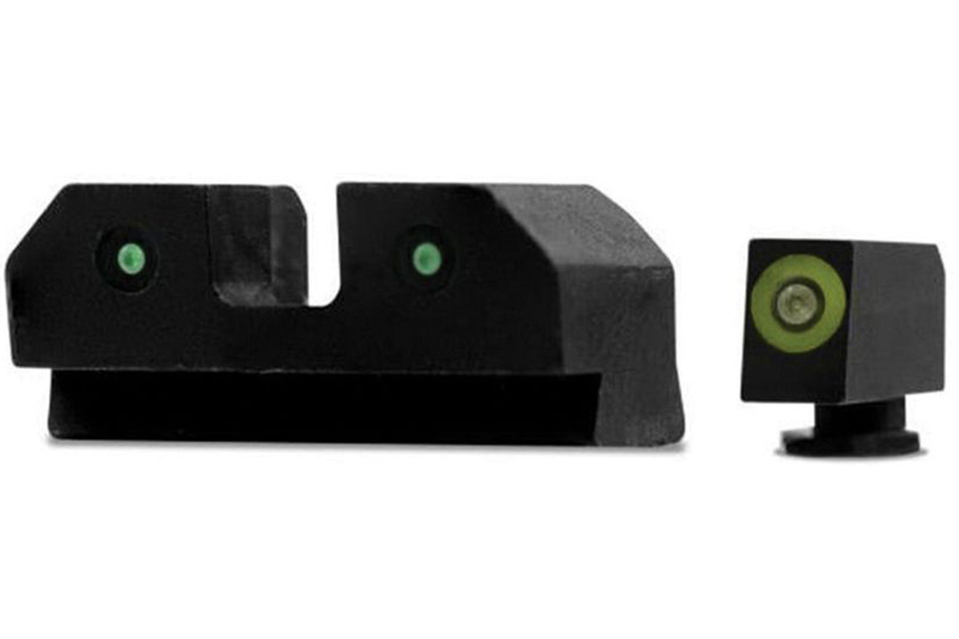 XS RAM (Radioactive Material) tritium night sights feature a traditional 3 dot tritium, notch and post sight picture. The rear is blacked out to increase contrast against the front sight. The front sight is available in orange or green and is equipped with our Ember Glow Dot Technology. Ember absorbs ambient light and glows in low light. The front tritium lamp charges the Ember dot making the front sight glow brighter than the rear, keeping focus down range. RAM sights are the brightest options for fast and accurate shooting in bright and low light.