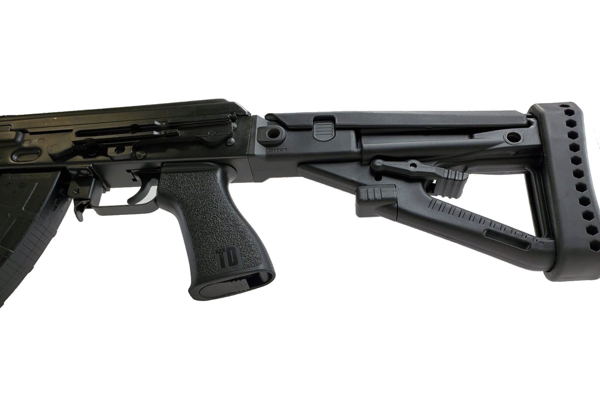 The 4 position adjustable buttstock includes a seven position cheek riser allowing an optimum sight picture with both iron and glass sights. The receiver extension, and the adjustable buttstock, feature molded in QD sling swivel inserts at four points, giving an operator multiple ambidextrous sling options. Constructed of high strength, carbon fiber and glass reinforced tan polymer, this buttstock offers high strength plus a lifetime of excellent service. A slip on recoil pad is included.