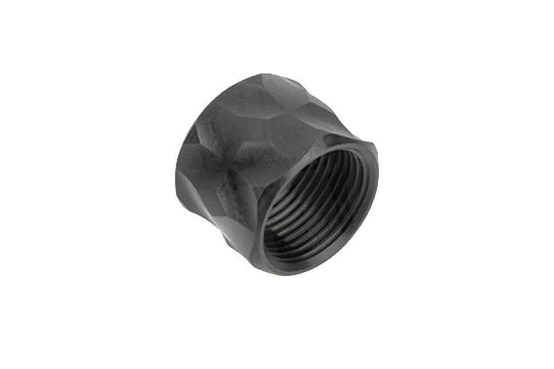 The Zev Technologies Glock Optimized Match Barrel Thread Protector is machined from 416R stainless steel. It is threaded 1/2×28 with a recessed muzzle that matches the angle of the target crown on the barrel. Machined with a unique profile to set it apart from the rest.